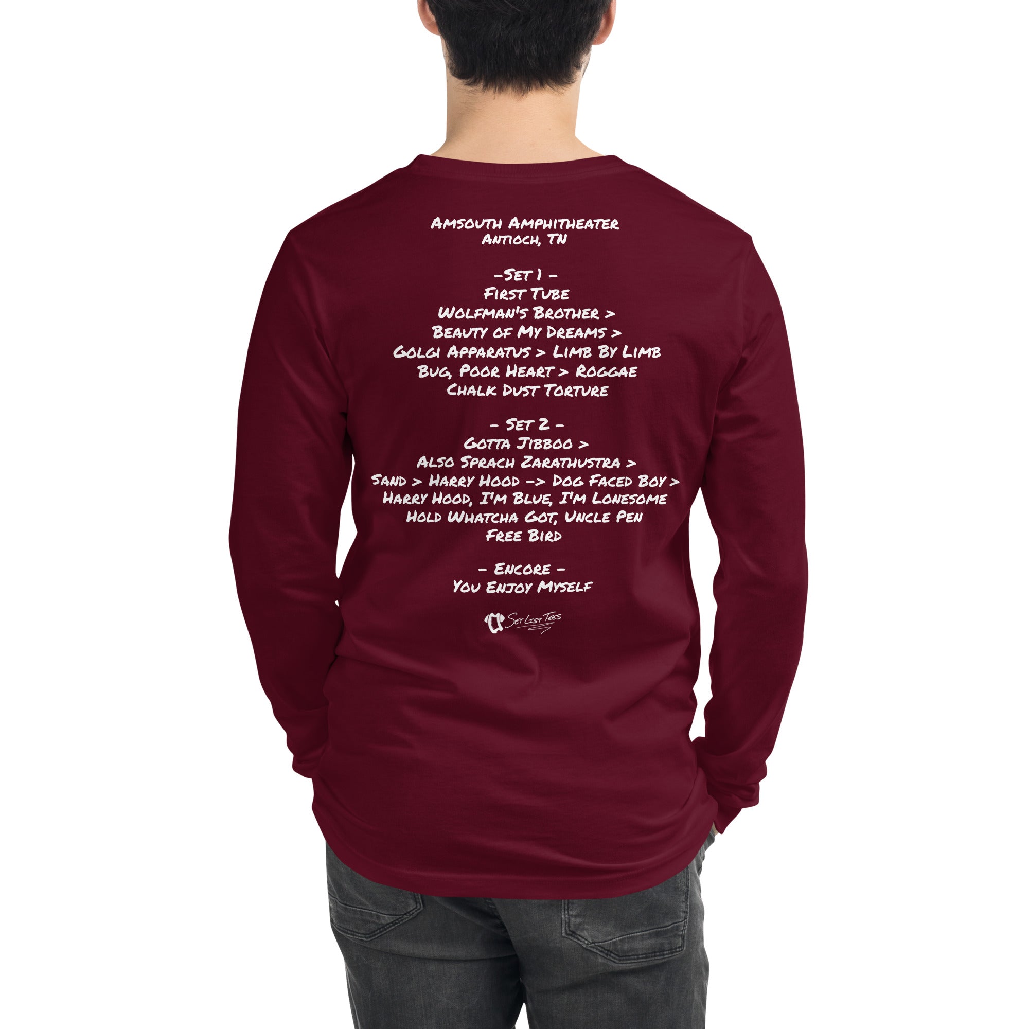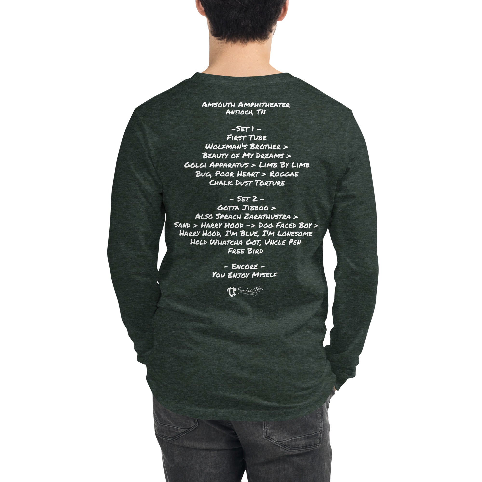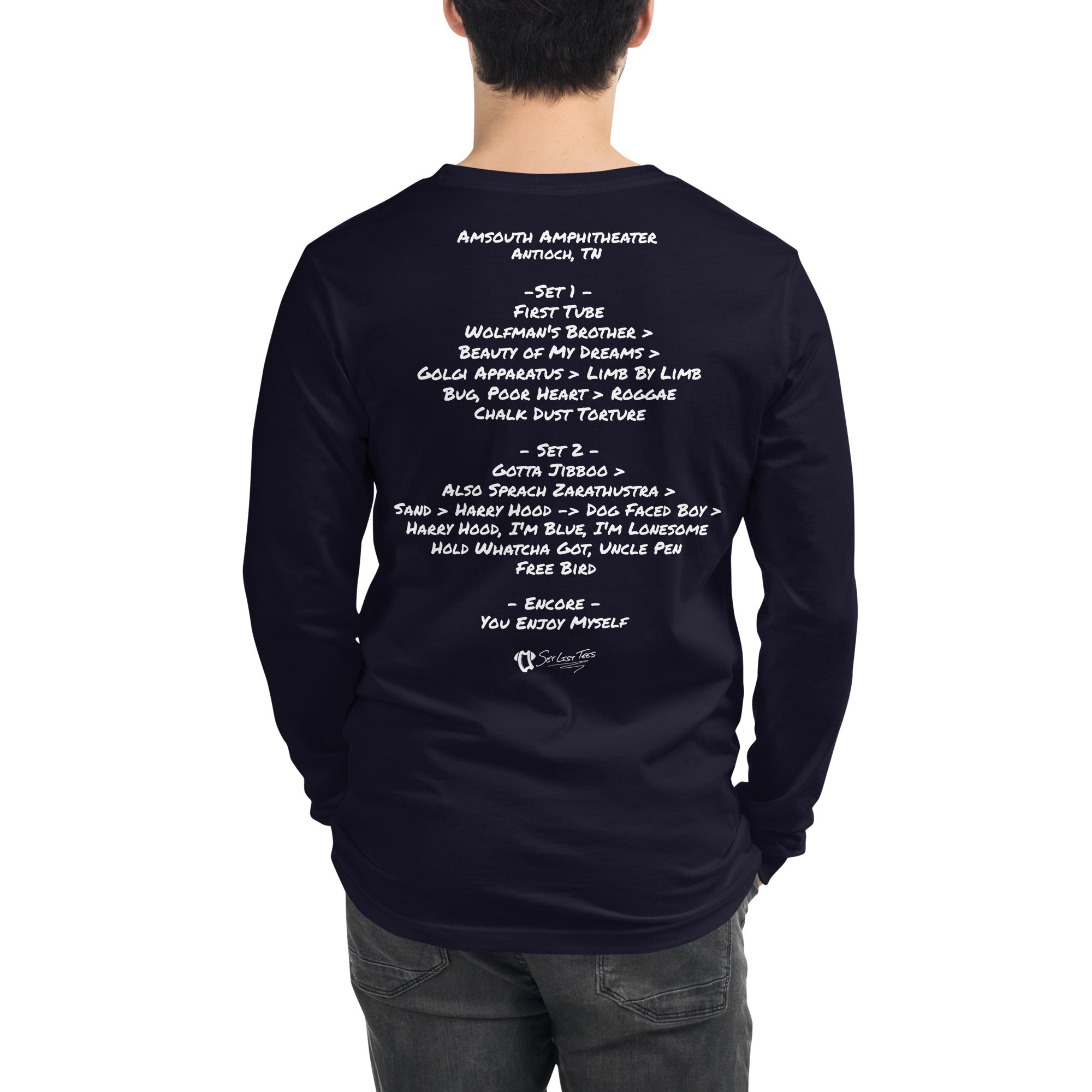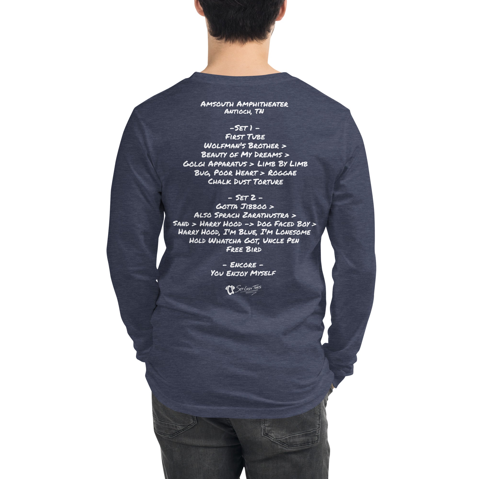 Step back into the summer of 2000 with this exclusive long-sleeve SetListTee featuring Phish’s unforgettable June 22, 2000 performance at the AmSouth Amphitheater in Antioch, Tennessee. Designed for fans who live for the music, the memories, and the magic of a great show, this tee blends nostalgia with clean, modern style.